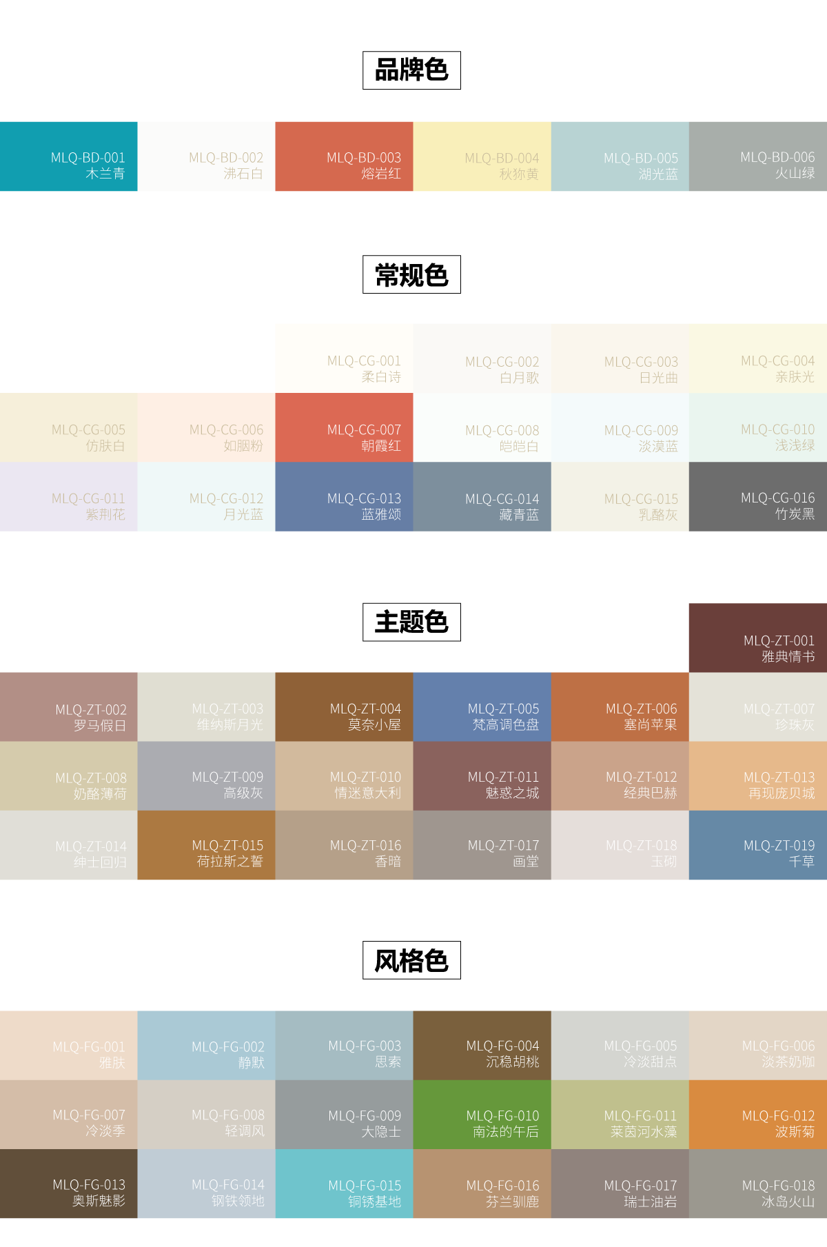 山川系列、星河系列、清風系列、煙嵐系列、云海系列