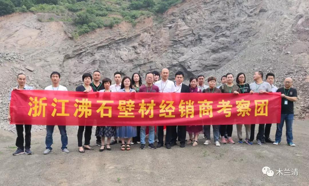 ▲木蘭清總部團隊與浙江沸石壁材經銷商考察團參觀礦山合影