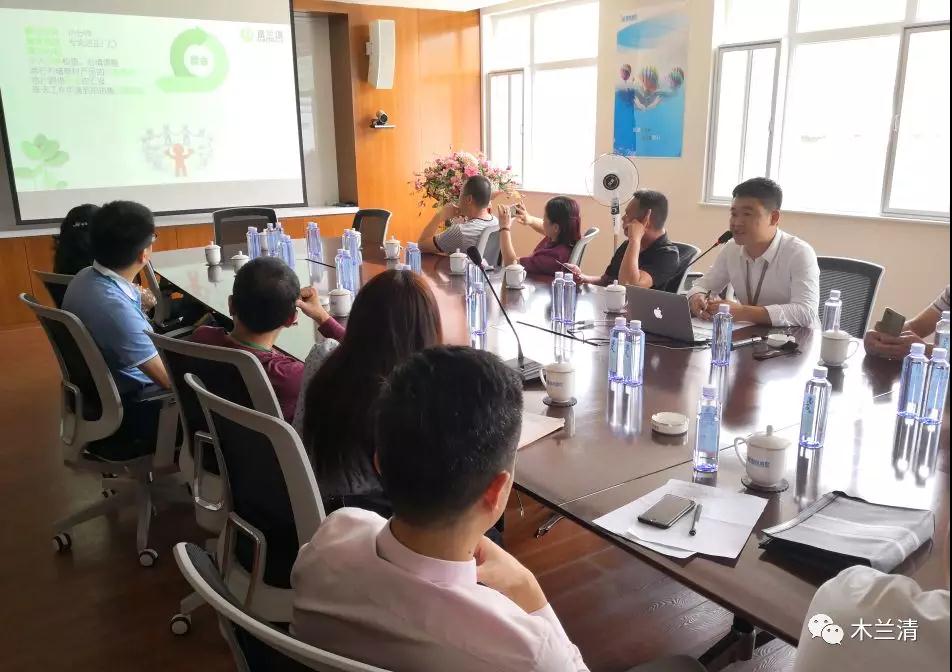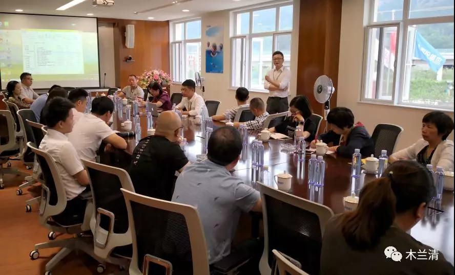 ▲木蘭清事業部副部長盧寧為浙江沸石壁材經銷商考察團進行產品營銷培訓