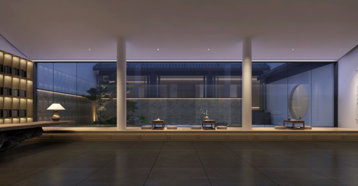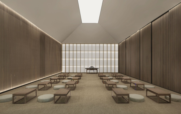 整個(gè)沸石體驗(yàn)館的室內(nèi)墻面皆使用了源自天然材料、無(wú)任何污染的木蘭清沸石內(nèi)墻壁材。在書院展覽廳、客房、禪室等地方還運(yùn)用了簡(jiǎn)易而不簡(jiǎn)單的肌理工藝塑造室內(nèi)空間,將舒適宜人的休息空間營(yíng)造地更加自然、原生態(tài)。