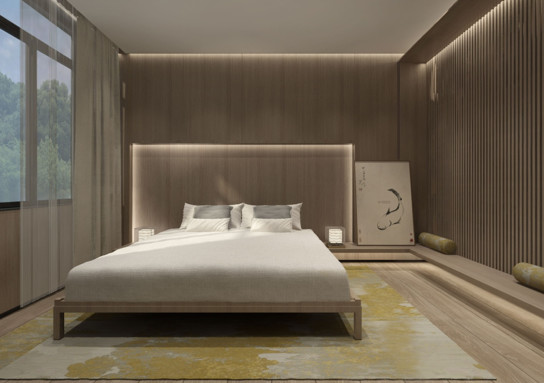 沸石體驗(yàn)館的客房墻面與天花板皆選自沸石內(nèi)墻壁材,分別以簡(jiǎn)約的噴涂與彰顯典雅的木紋造型吸引著每一個(gè)人。不僅如此,沸石內(nèi)墻壁材那強(qiáng)大的環(huán)保功能性,更是保障了每一個(gè)入住人的健康與舒適。在室內(nèi)一樣享受著與室外自然氣息的無(wú)差,真正做到天人合一的境界。