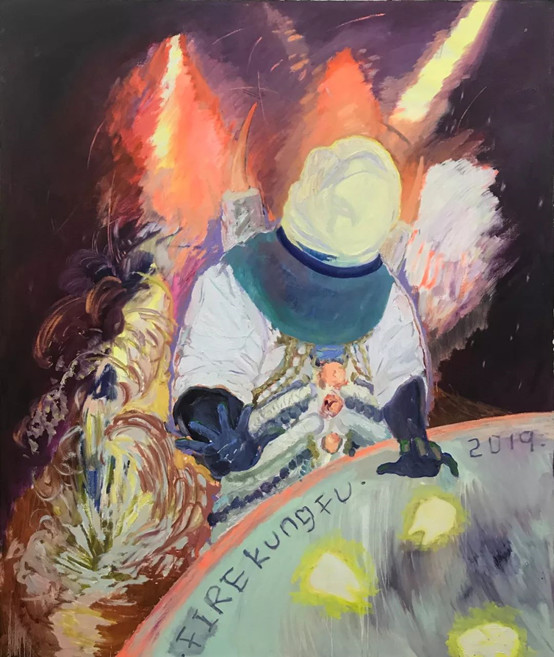 高英普《燒火工》200*180cm 布面丙烯 2019年