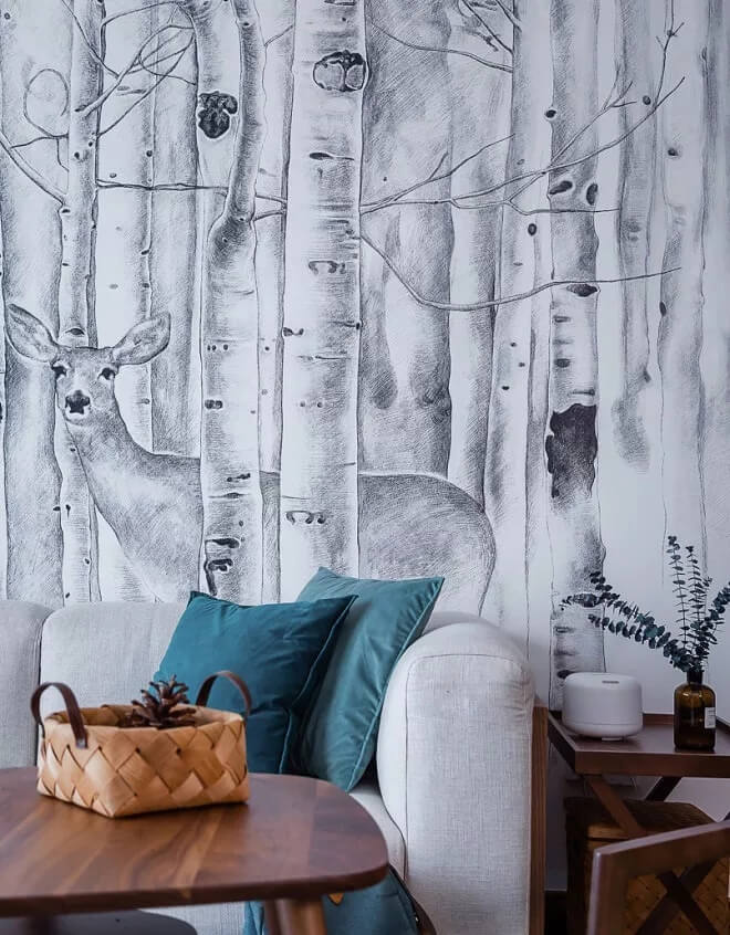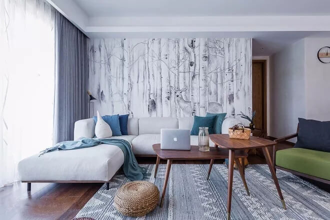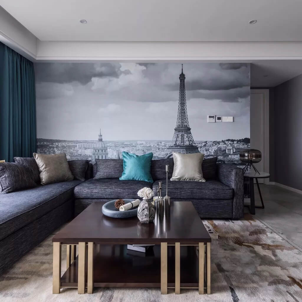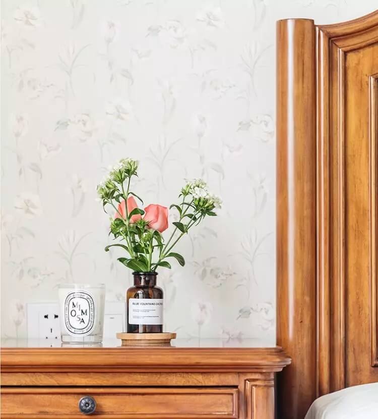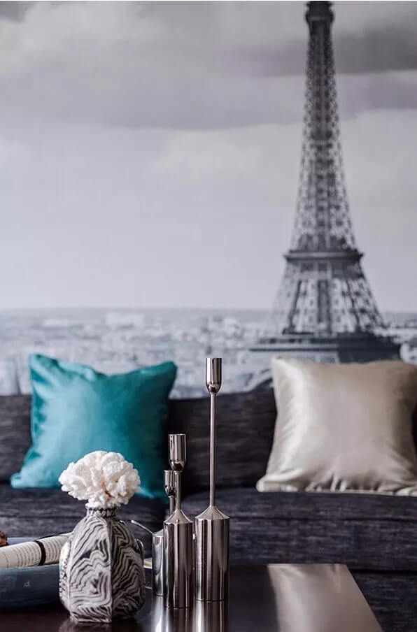 建議大家在一個完整的空間盡量不要使用超過三種款式的壁紙,比如客廳的電視背景想做一個特殊效果,想要花型大一點的,立體感強一點的,或顏色豐富飽滿一點的。這時候建議其他的墻面選擇比較素色的來搭配,讓整體感比較強。
