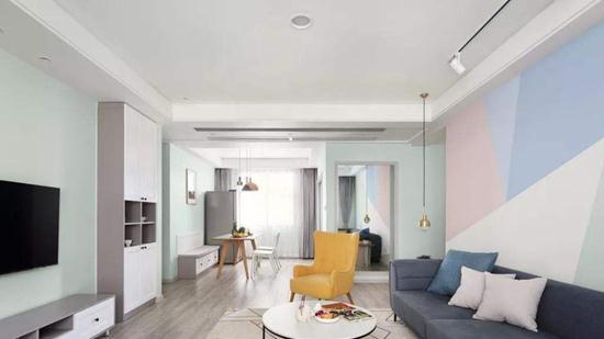 2. 頂面材料的選擇:如果居室的層高不高的話可以不做吊頂,直接刷上水性涂料或是貼上環保型的墻紙就好。如果要吊頂的話,可以采用紙面石膏板、硅鈣板等來代替木龍骨夾板。