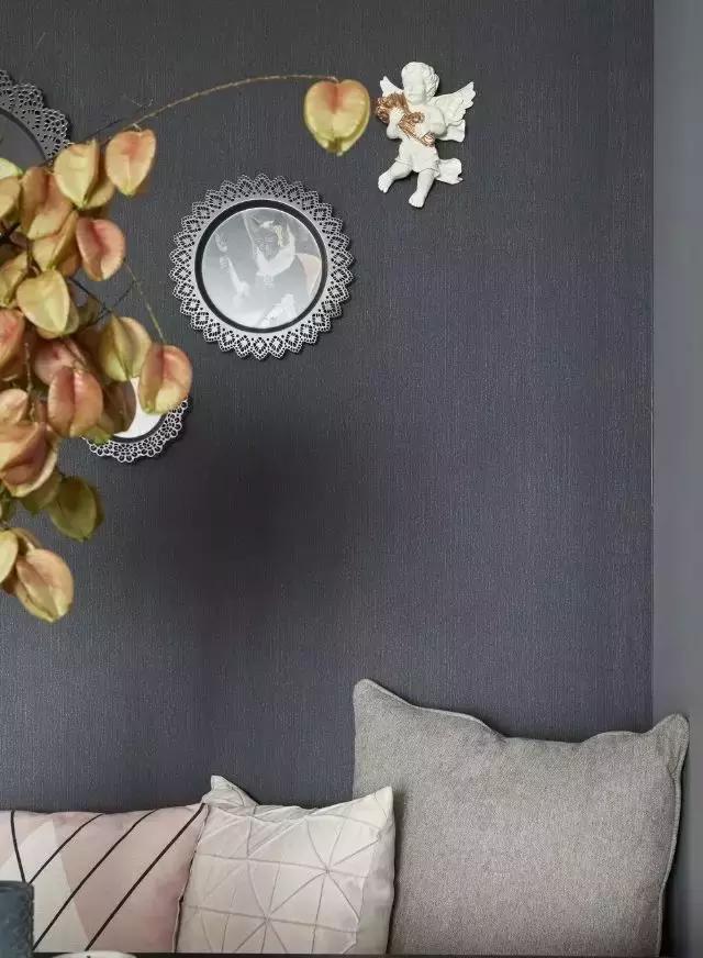 沸石墻面同色系的復古掛盤打破了深灰色的沉靜