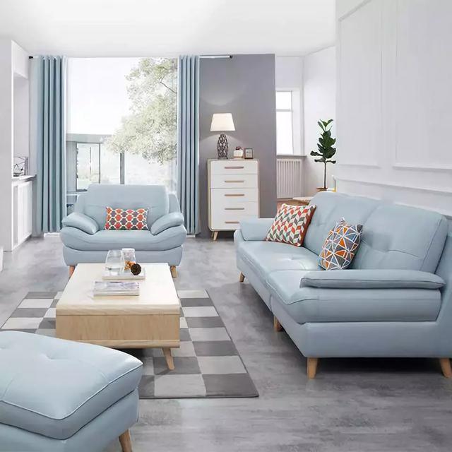 ▲淺灰藍(lán)小戶型皮沙發(fā)