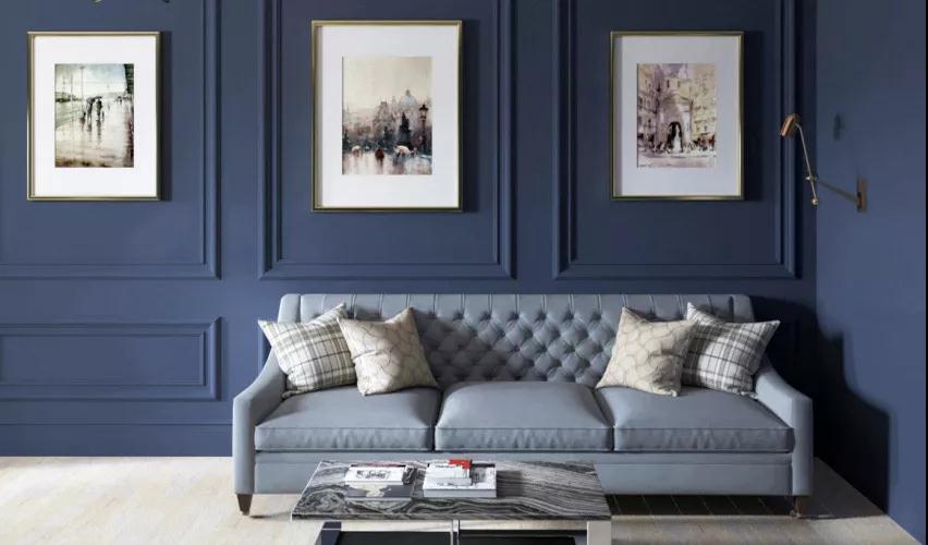 藍色屬于較為常見的冷色系墻面顏色,按照低飽和度和低明度的規律,出現在家裝中的藍色一般有冰凍藍、霧霾藍和深藍色。比較適合美式風格和地中海風格,如果房間光照充足,也可以選擇藍色來中和一下,其都能讓房間呈現出更高的品質感。