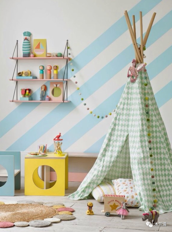 藍色是大多家長為孩子挑選的墻面顏色,藍色的空間能讓心靈上得到平靜,給孩子營造一個安靜,自由暢想的空間,培養孩子冷靜、沉著的性格。