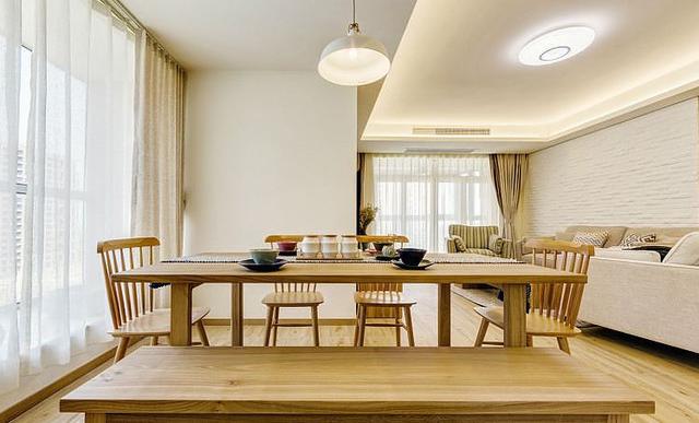 布置一間簡約的日系餐廳,將實木餐桌椅靠墻擺放,背靠玻璃窗,加上綠色植物的點綴,似乎已經能感受到微風的吹拂。