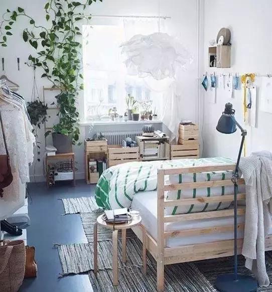白墻、黑地板、木家具,三種基礎色彩在空間中融合得天衣無縫,簡單的布置彰顯出生活的隨性態度,綠色植物帶來清新自然的氣息。