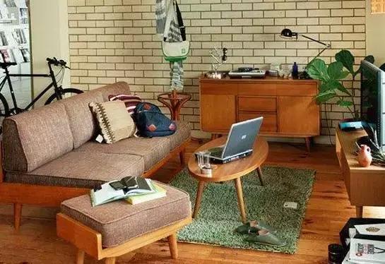 磚墻的設計顯得十分另類,木質家具與地板保持了色彩上的統一,地毯、植物等綠意的點綴讓空間更加貼近自然。