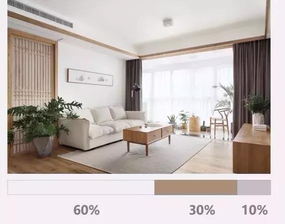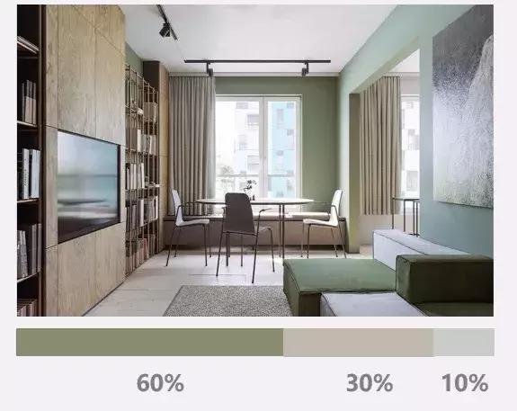 任何一個(gè)空間都需要確定色彩比例,一般會選擇使用6:3:1的“黃金比”