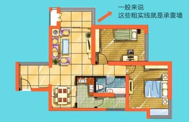 所以處理墻體之前,千萬千萬千萬要清楚了解房屋的架構和墻體的作用。如果業主可以拿到裝修圖紙,可以看一下圖紙上的墻體劃分,一般圖紙上的粗實線就代表承重墻。