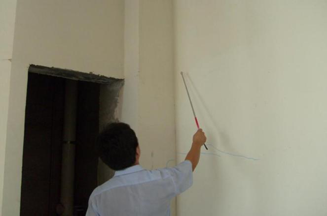 第四,測量陽角。在檢驗陽角過程中同樣需要使用直角檢測尺,可以將直角檢測尺放在室內直角墻角處,同時保證水平儀平穩,查看陽角是否方正。