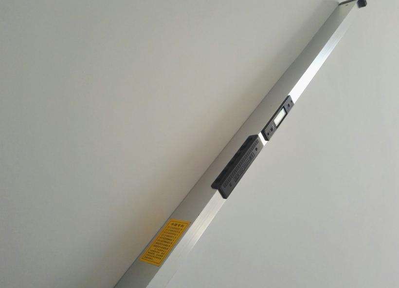 其次,觀察墻面垂直度。需要將靠尺的一端與地面保持垂直與豎立,然后將其緊貼于墻面,與水平儀保持平衡,接著再觀察墻面的垂直度。