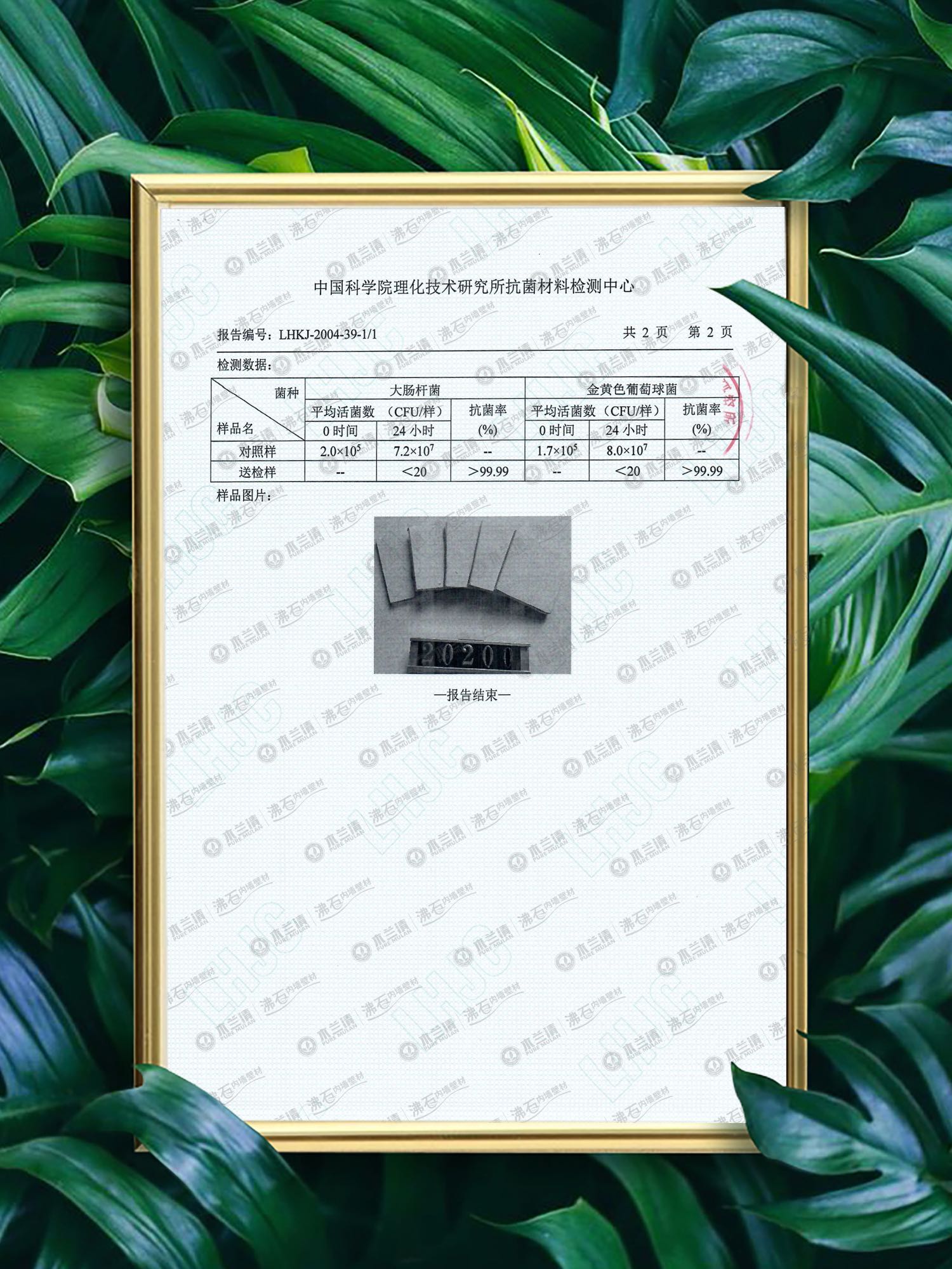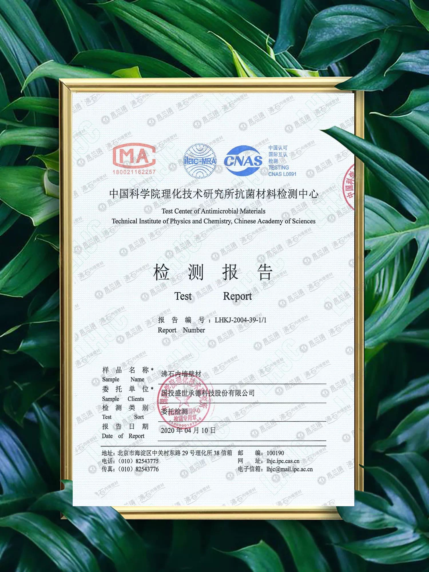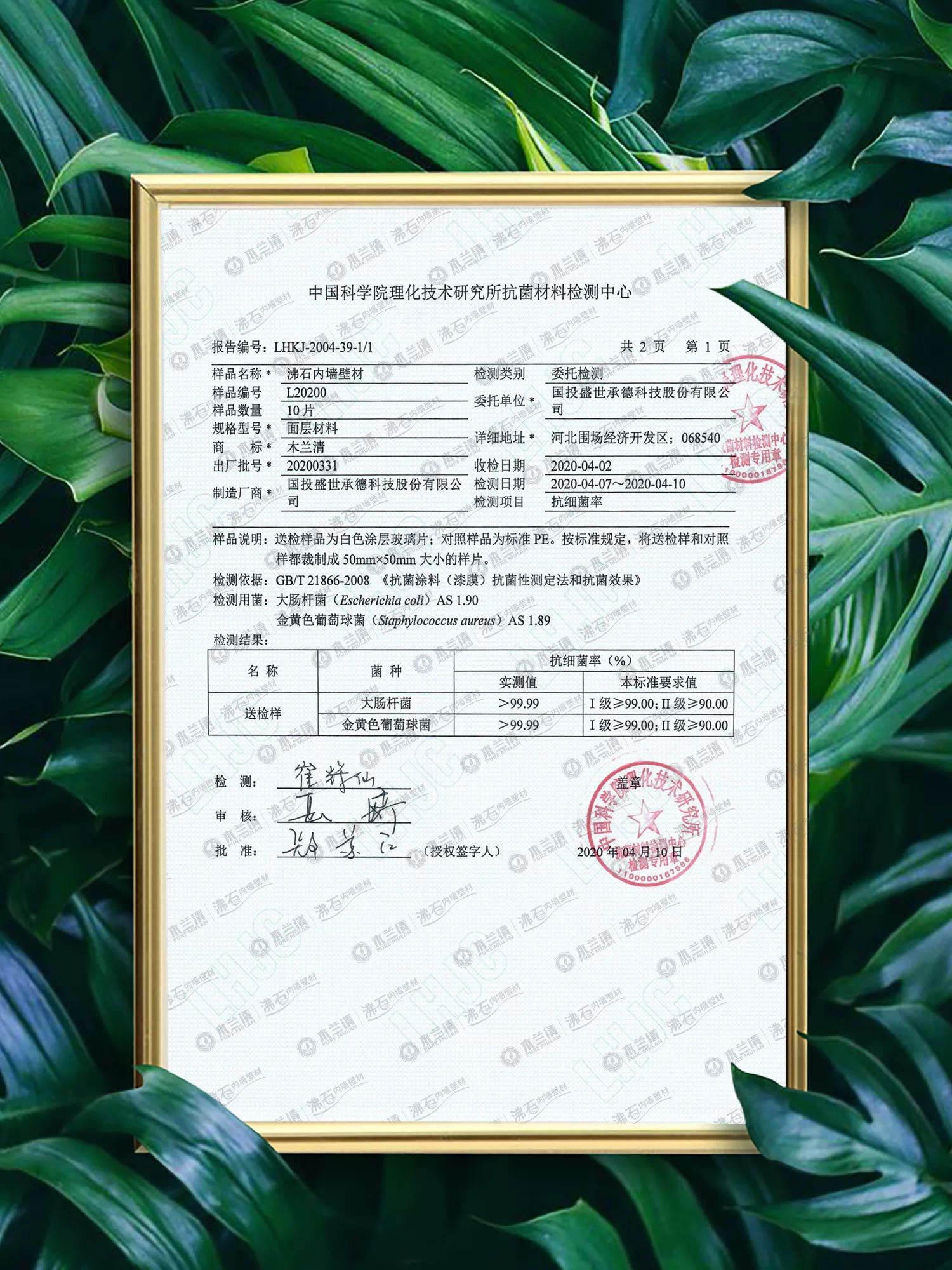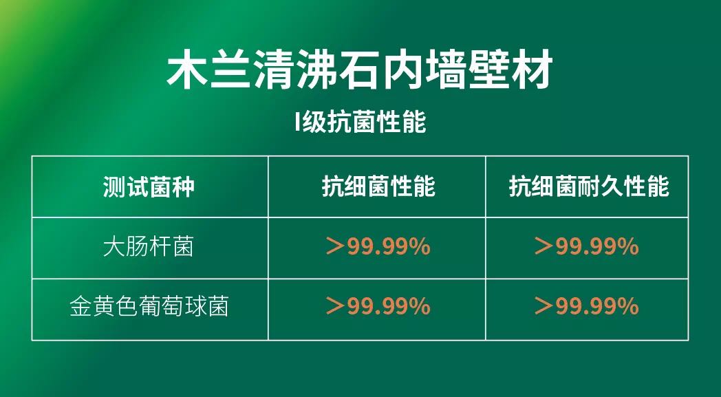 目前,木蘭清沸石內墻壁材已通過國家抗菌質量檢測,據GB/T 21866-2008《抗菌涂料(漆膜)抗菌性測定法和抗菌效果》檢測結果顯示,其對大腸桿菌、金黃色葡萄球桿菌等多種細菌及霉菌具有廣泛高效和較長時間的殺菌、抑制能力,抗菌性能高達99.99%以上,耐霉菌0級,持久抗菌性能達到99.99%以上!
