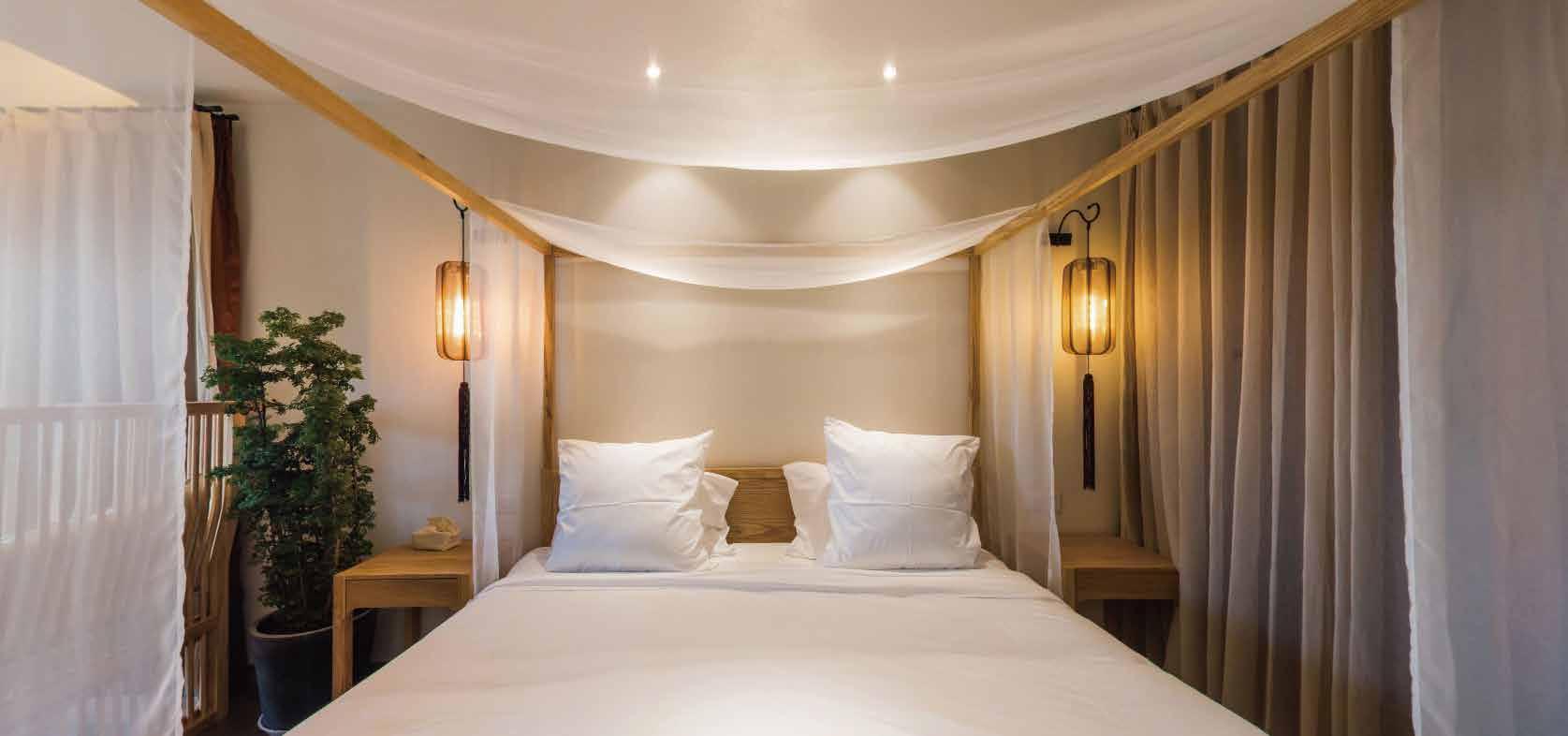 客房使用木蘭清沸石天然壁材,起到了非常好的調(diào)溫調(diào)濕,防霉防潮的作用,為喜在山舍入住的客人帶來別具一格的室內(nèi)環(huán)境。來到杭州來到喜在山舍,讓每一位客人體會隱于大自然的光陰。