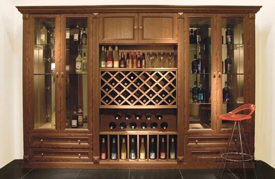 下圖中的這款酒柜固然沒有起到太大的分隔感化,可是酒柜自己就很好的分隔出了很多的功能區(qū),閣下雙方的分歧酒柜層高使得可以擺放的酒的高度分歧,第一和四層的酒是可以豎立地寄存;而其他的位置要擺放酒的話,則需要臥倒著放,不外如許形成了很美的錯落感。