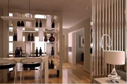 想要節(jié)流居室的空間,建議大家可以選擇一款木質(zhì)且?guī)РAУ木乒褡鳛楦艚^距離,酒柜可以擺放一些主人喜好的裝飾品和瓊漿,并且還能讓居室看上去加倍的有品位。若是在酒柜的頂部再安裝幾個小射燈,整個酒柜會披發(fā)著濃濃的崇高氣息。